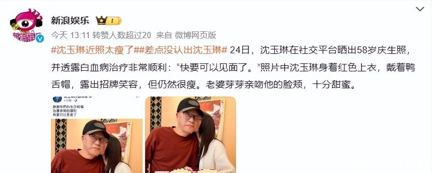 58岁沈玉琳近况曝光,生病后暴瘦脸颊凹陷,妻子芽芽脸颊吻好温馨